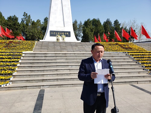 公司黨委書記徐向峰代表公司向英勇的革命烈士們敬獻(xiàn)了花籃,同時(shí)發(fā)表了講話。他說這八十二位烈士是為淮陰人民而戰(zhàn),是為祖國而戰(zhàn),他們是無數(shù)抗日先烈的一部分,我們要深切緬懷所有的為國犧牲的革命先烈!現(xiàn)如今,在以習(xí)近平同志為核心的黨中央的帶領(lǐng)下,在習(xí)近平新時(shí)代中國特色社會(huì)主義思想引領(lǐng)下,中國特色社會(huì)主義進(jìn)入了新時(shí)代,作為新時(shí)代的共產(chǎn)黨員,我們要繼續(xù)傳承先烈遺志,宏揚(yáng)他們不畏艱難、不怕犧牲、英勇頑強(qiáng)的革命精神,服從大局、心中無我的擔(dān)當(dāng)精神。徐書記號(hào)召大家要加強(qiáng)自我修煉,全面提高自我,事事有擔(dān)當(dāng)、能擔(dān)當(dāng)、會(huì)擔(dān)當(dāng),盡顯先鋒模范的帶頭作用,帶領(lǐng)一代一代水建人,為淮陰水建更加美好的明天而努力奮斗。